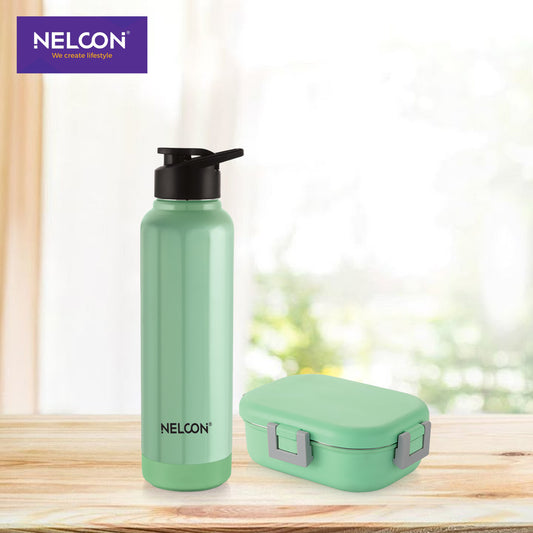 Neo Steel X Aura Combo Set - Sea Green (900ml Bottle + 1 PC TIFFIN)