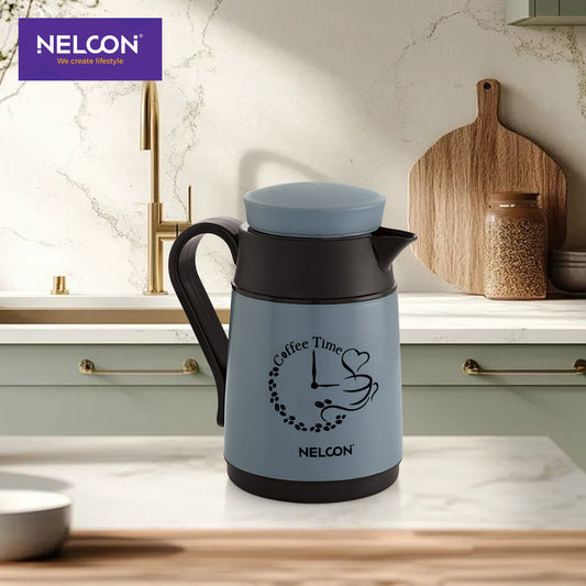 Discover the perfect travel companion with this compact 500ml insulated kettle in sophisticated grey, paired...