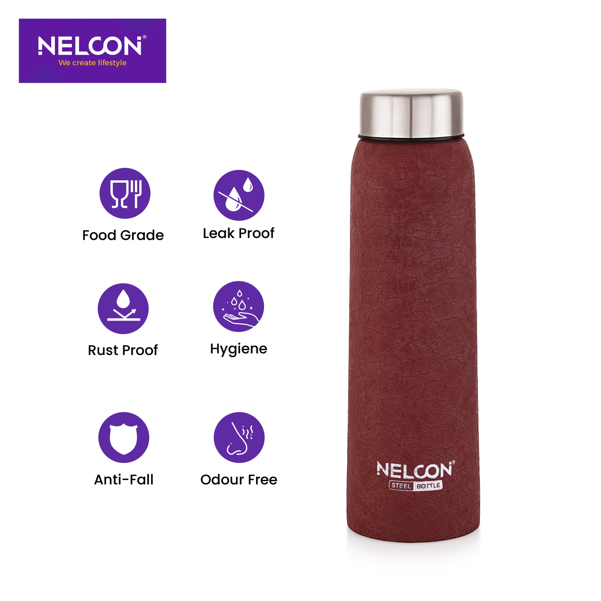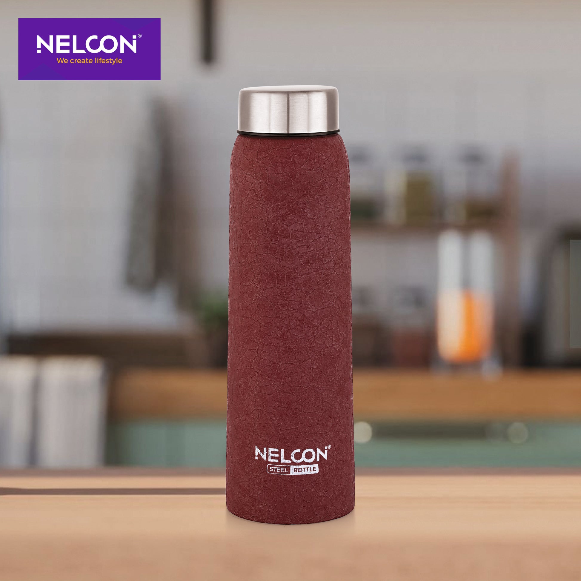 Maroon croc grip for sophisticated handling. The Absolute 1000ml stainless steel bottle features a deep maroon finish with enhanced textured surface. Made from premium 18/8 food-grade stainless steel, it offers durability with refined color and secure grip.