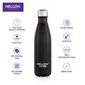 Timeless black cola style: Nelcon Industries Cola Black Thermo Plus 500ml double wall vacuum insulated stainless steel bottle�24-hour insulation. Durable 18/8 stainless steel, BPA-free, sweat-free�ideal for sleek, everyday use in office or adventures.