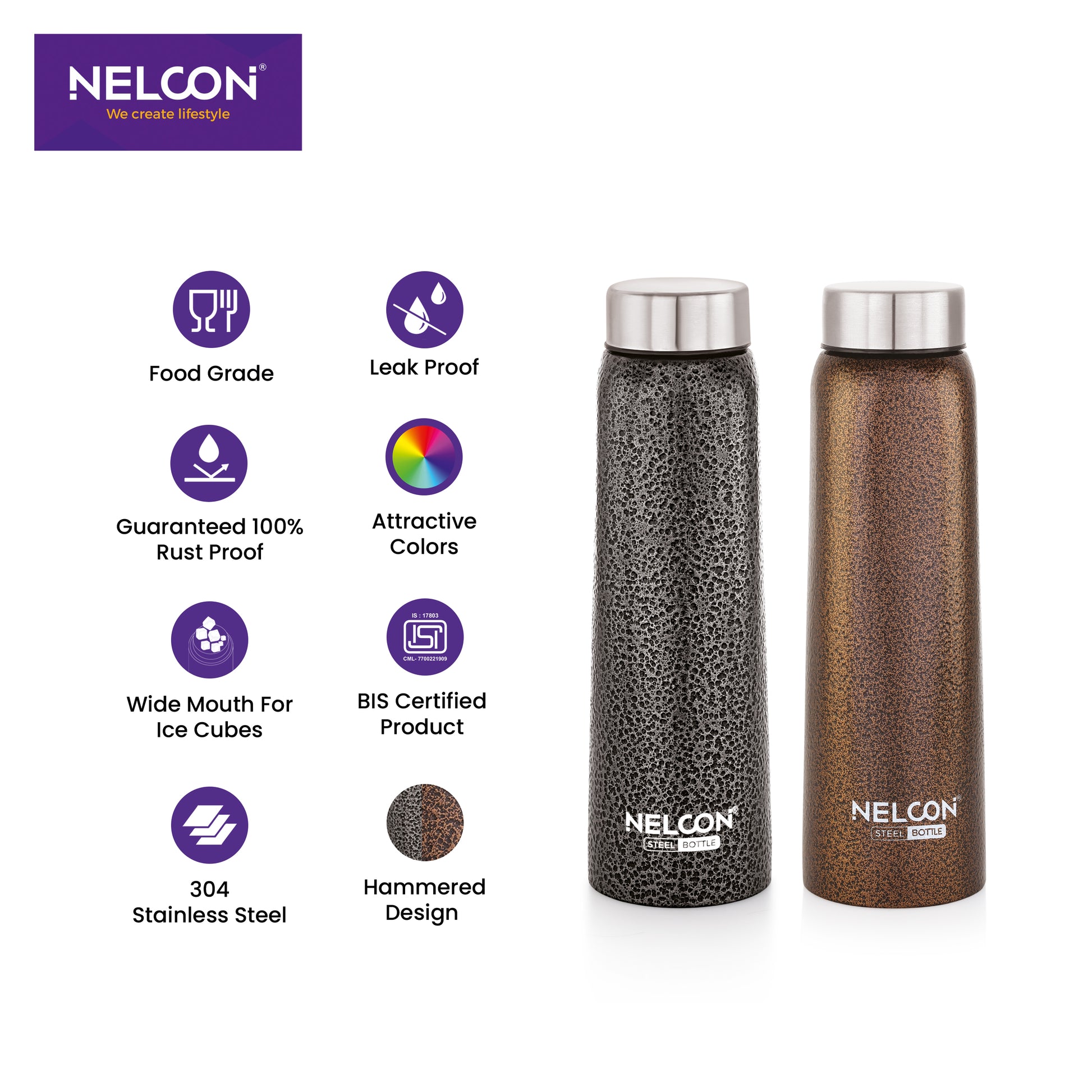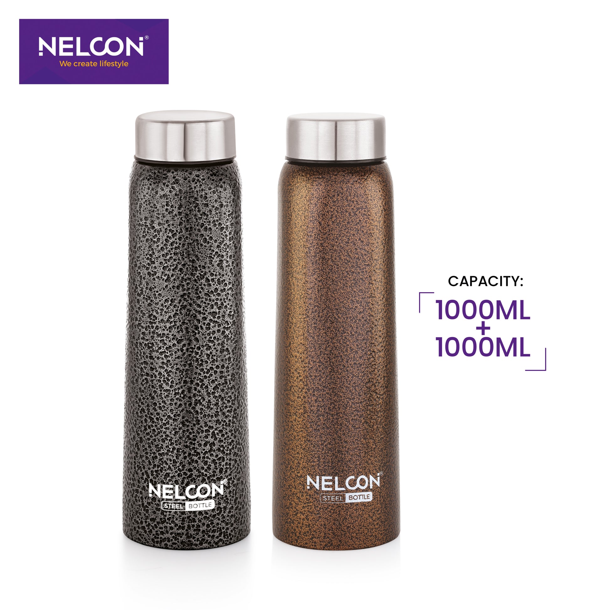 Elevate your gifting with this stunning 4-piece & 1000ml stainless steel bottle set featuring authentic hammered design with metallic finish in black and brown. Crafted from premium 304-grade stainless steel, these food-grade bottles are leak-proof, rust-free, and engineered for durability. The wide mouth with easy ice cube access makes filling and cleaning effortless, while the easy-to-sip design enhances everyday hydration. Perfect for weddings, corporate gifts, or family gifting occasions, this premium collection combines artistic craftsmanship with functional excellence. The distinctive hammered pattern adds a touch of luxury while the robust construction ensures reliable performance for years to come.