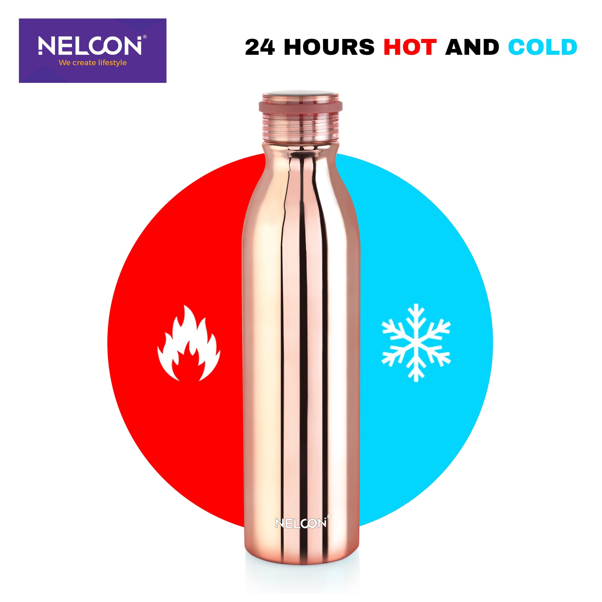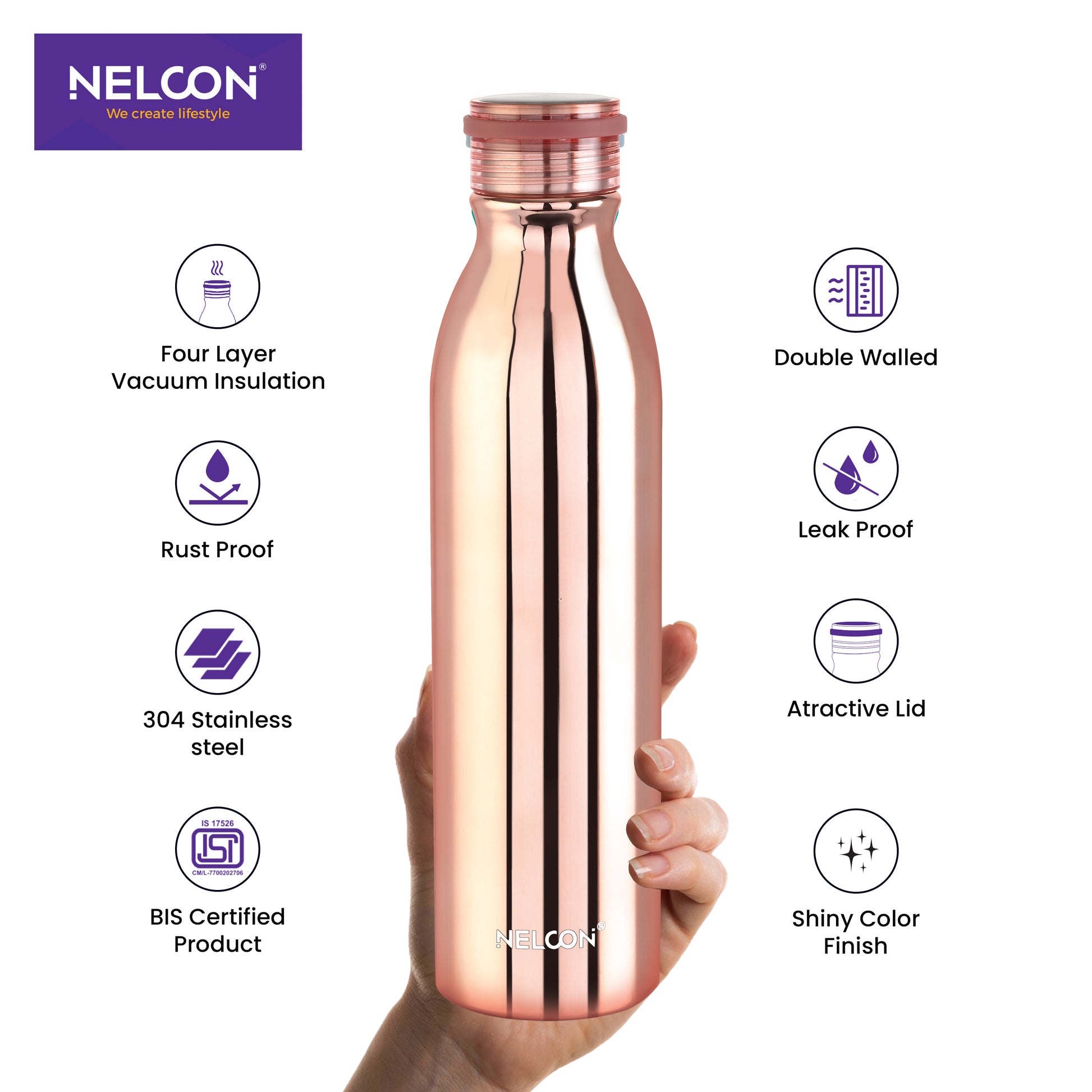 Luxe rose gold finish: the Nelcon Industries Stark 1000ml double wall vacuum insulated stainless steel water bottle offers 24-hour hot/cold. 18/8 stainless steel, leak-proof, BPA-free�great for glamorous lifestyles, events, or daily elegance.