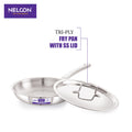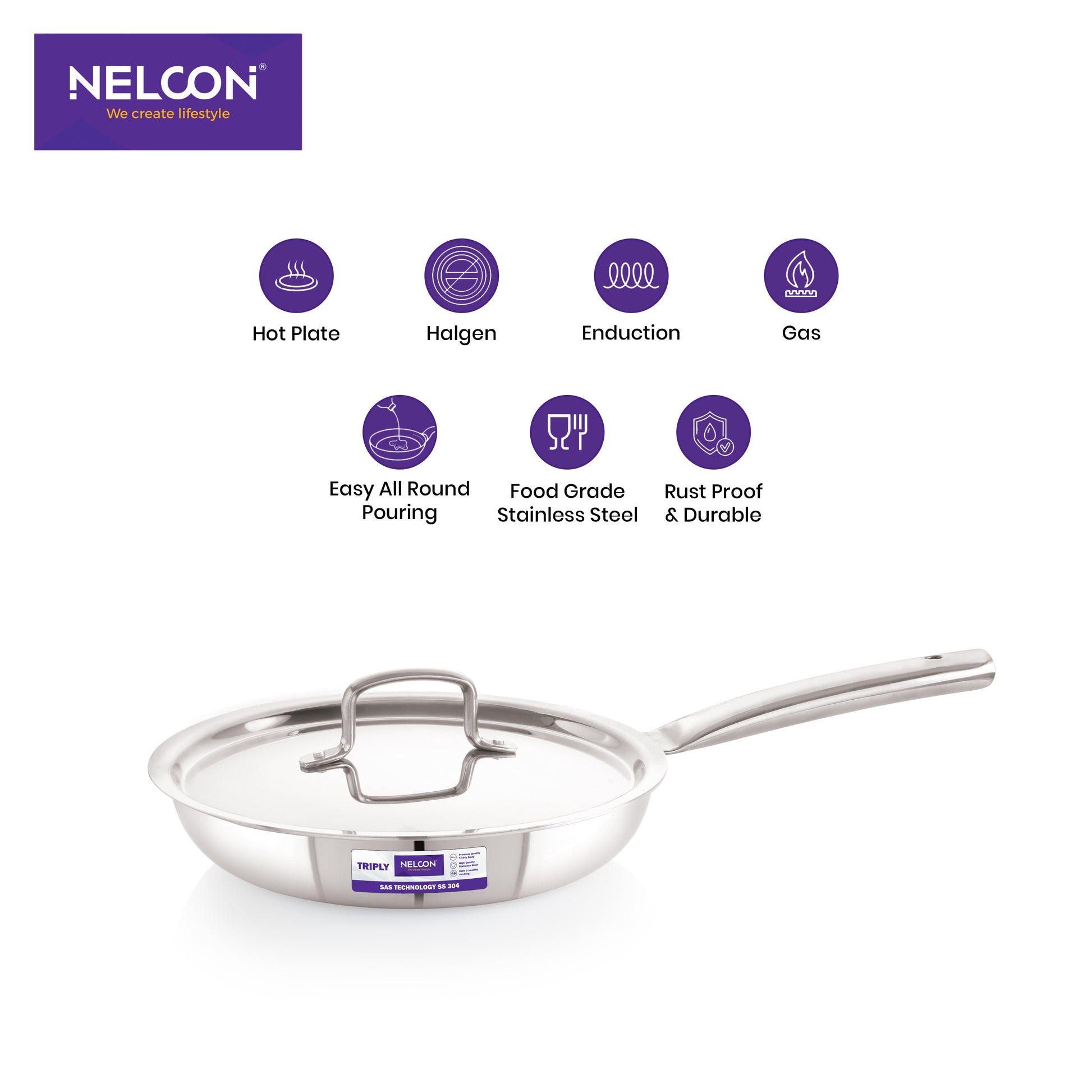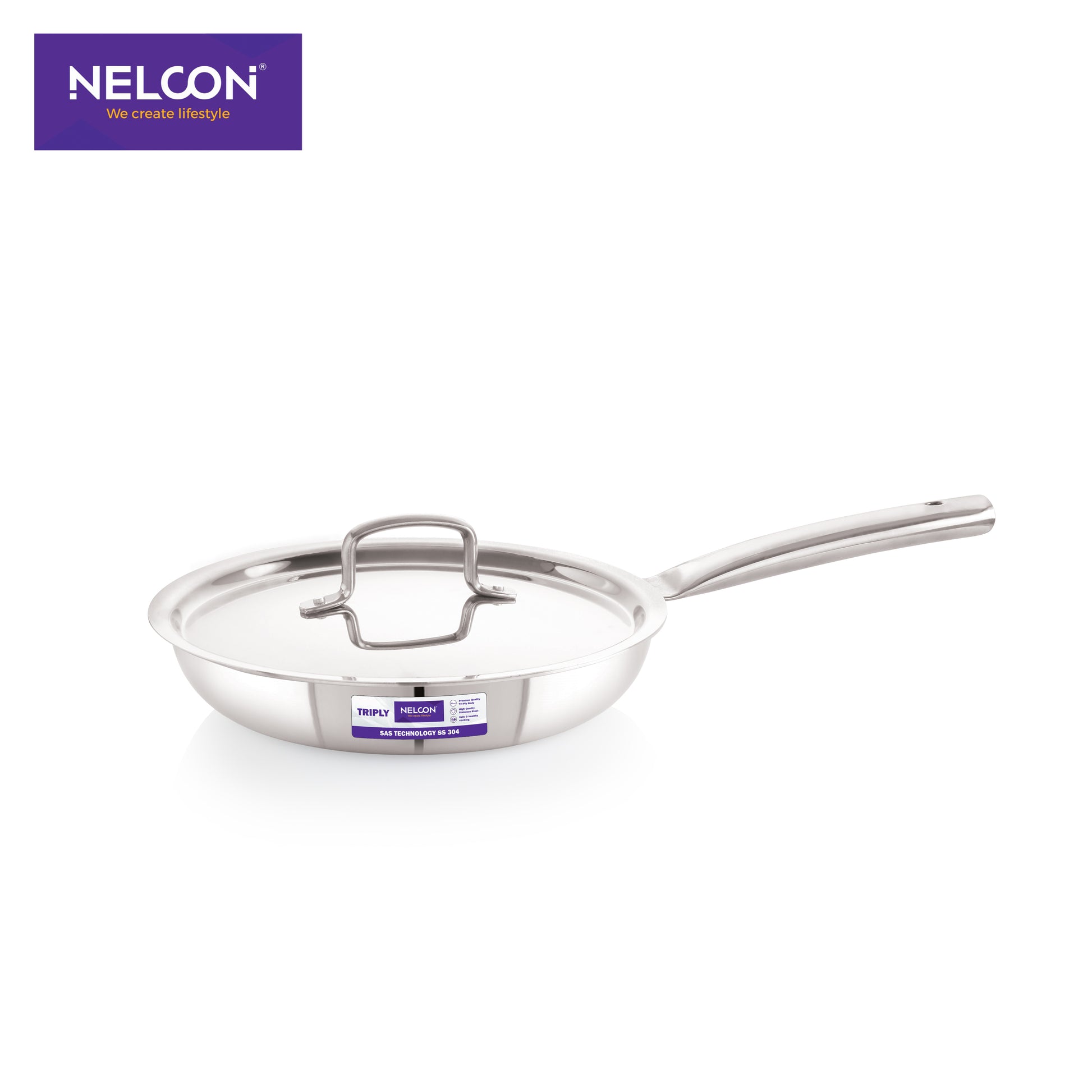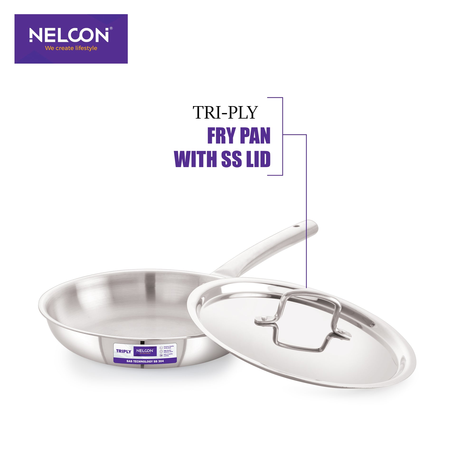 Triply Stainless Steel Fry Pan Induction Base Stainless Steel Lid Pipe Handle 24cm