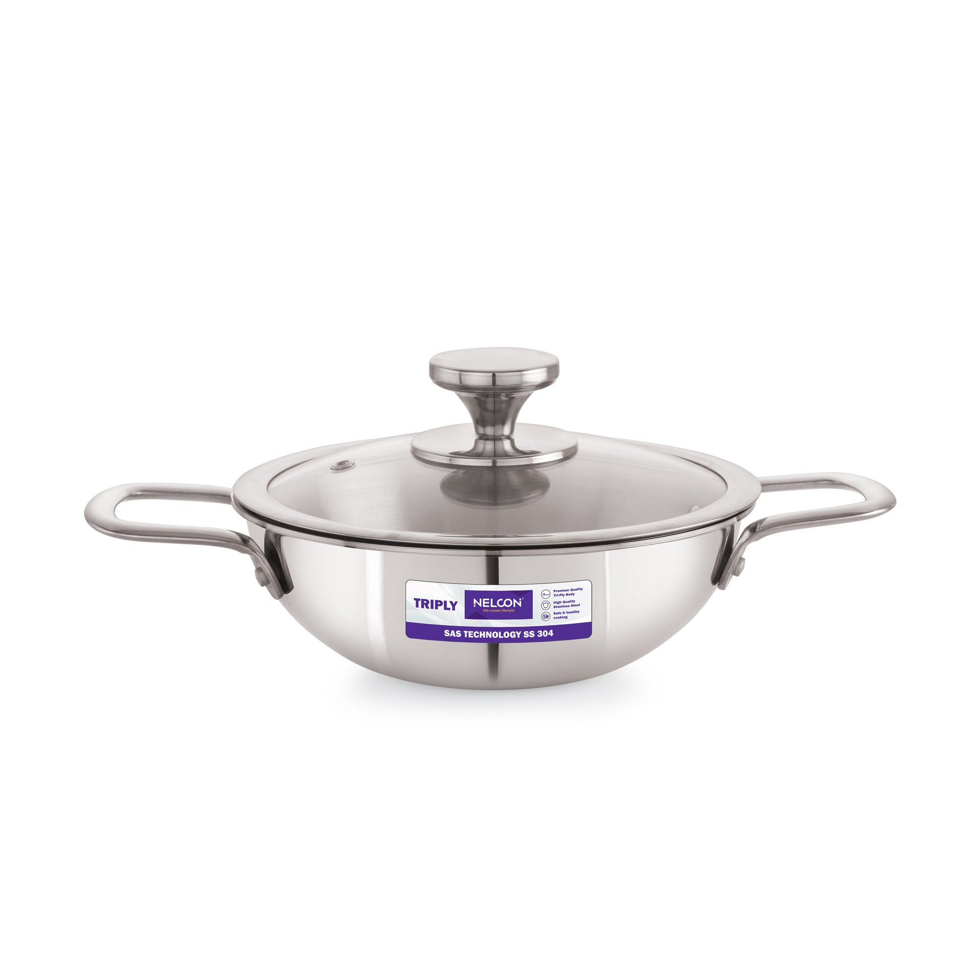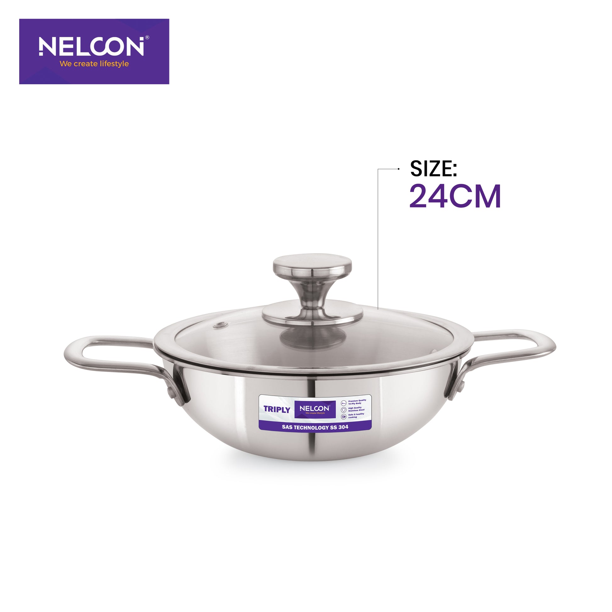 Triply Stainless Steel Kadai Induction Base & Glass Lid 24cm