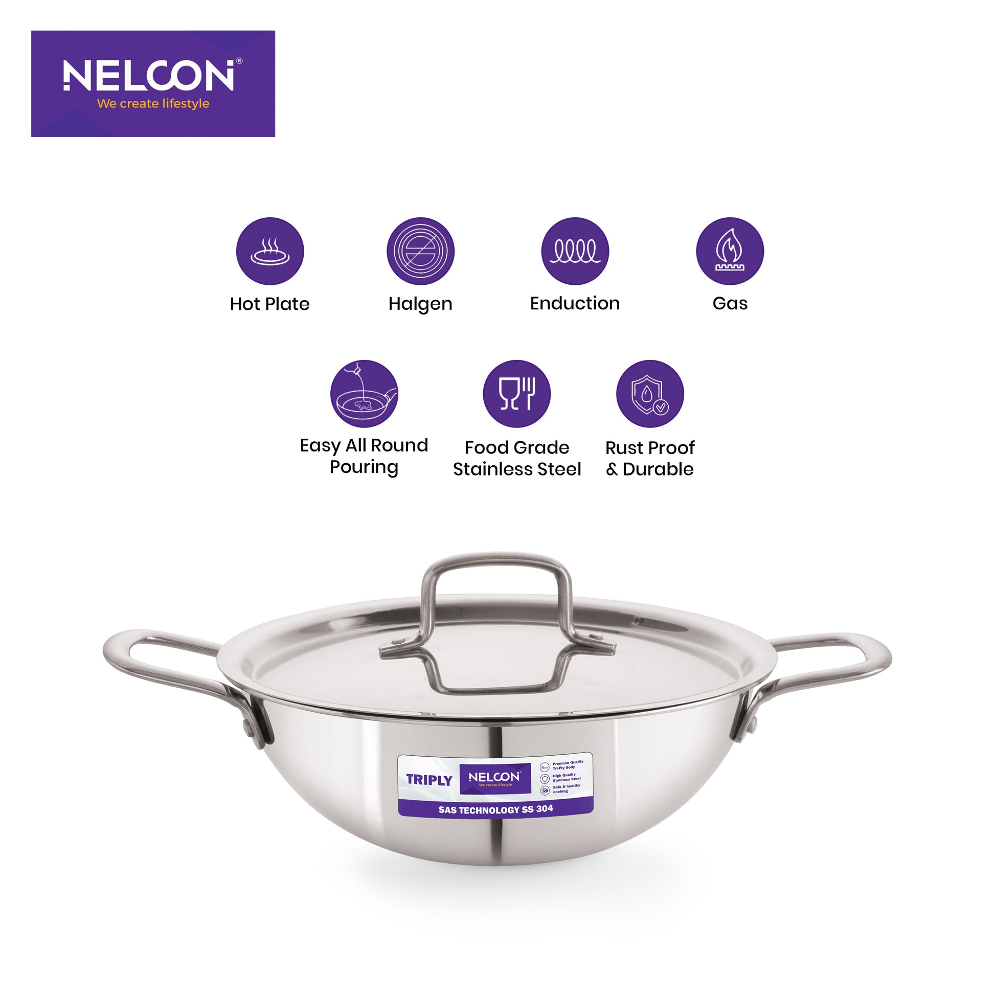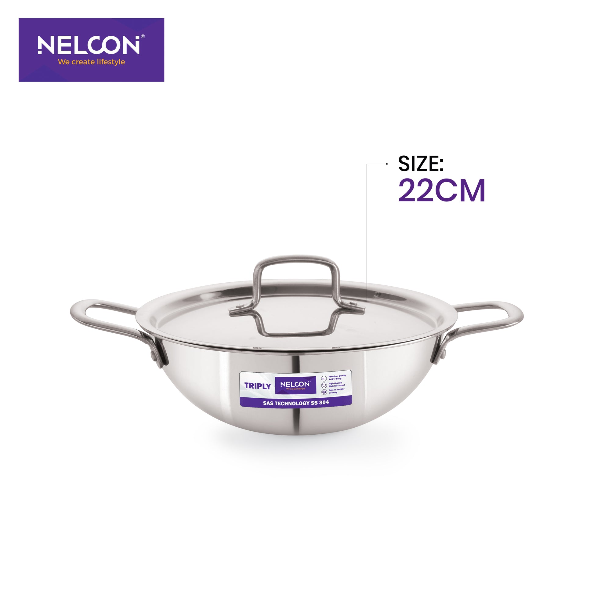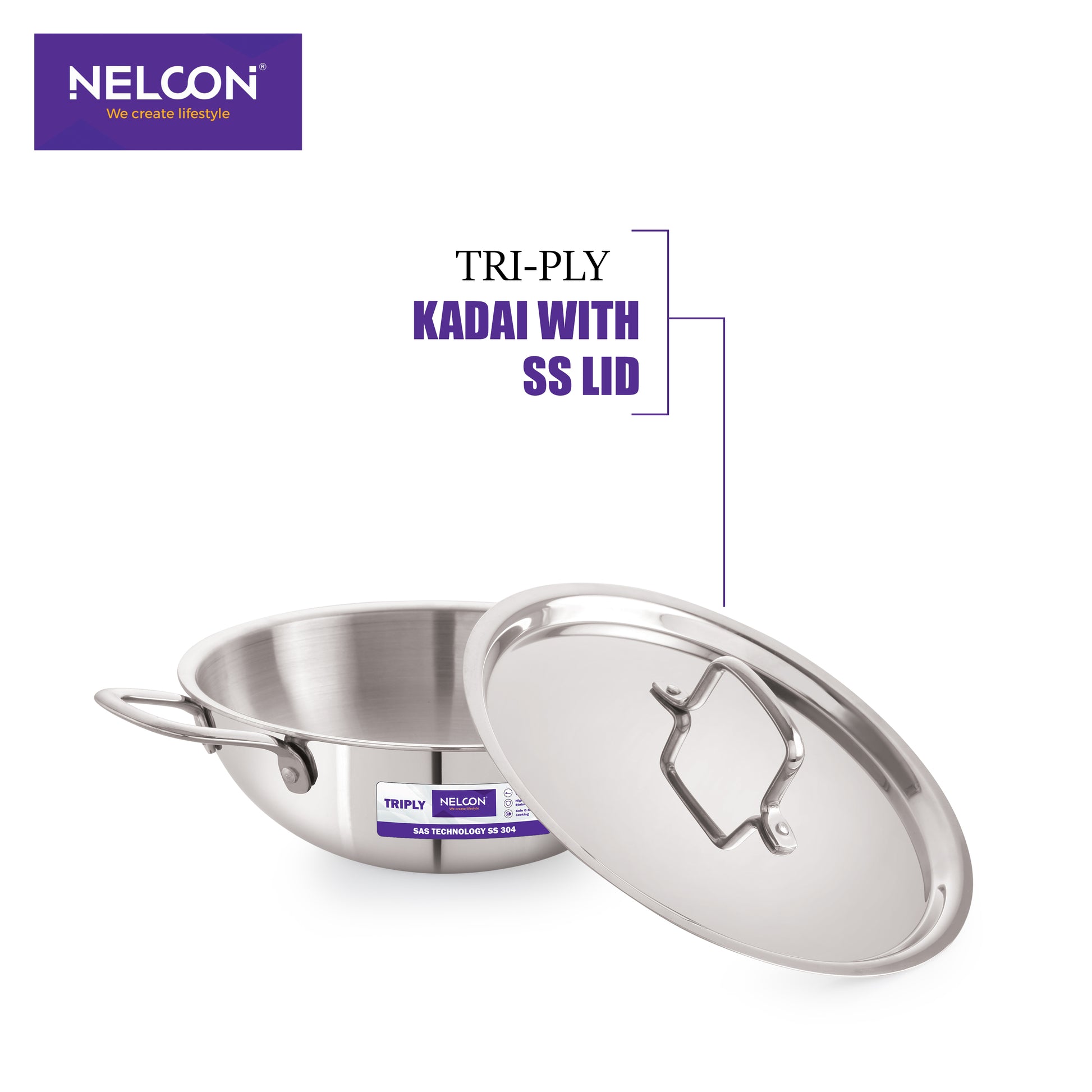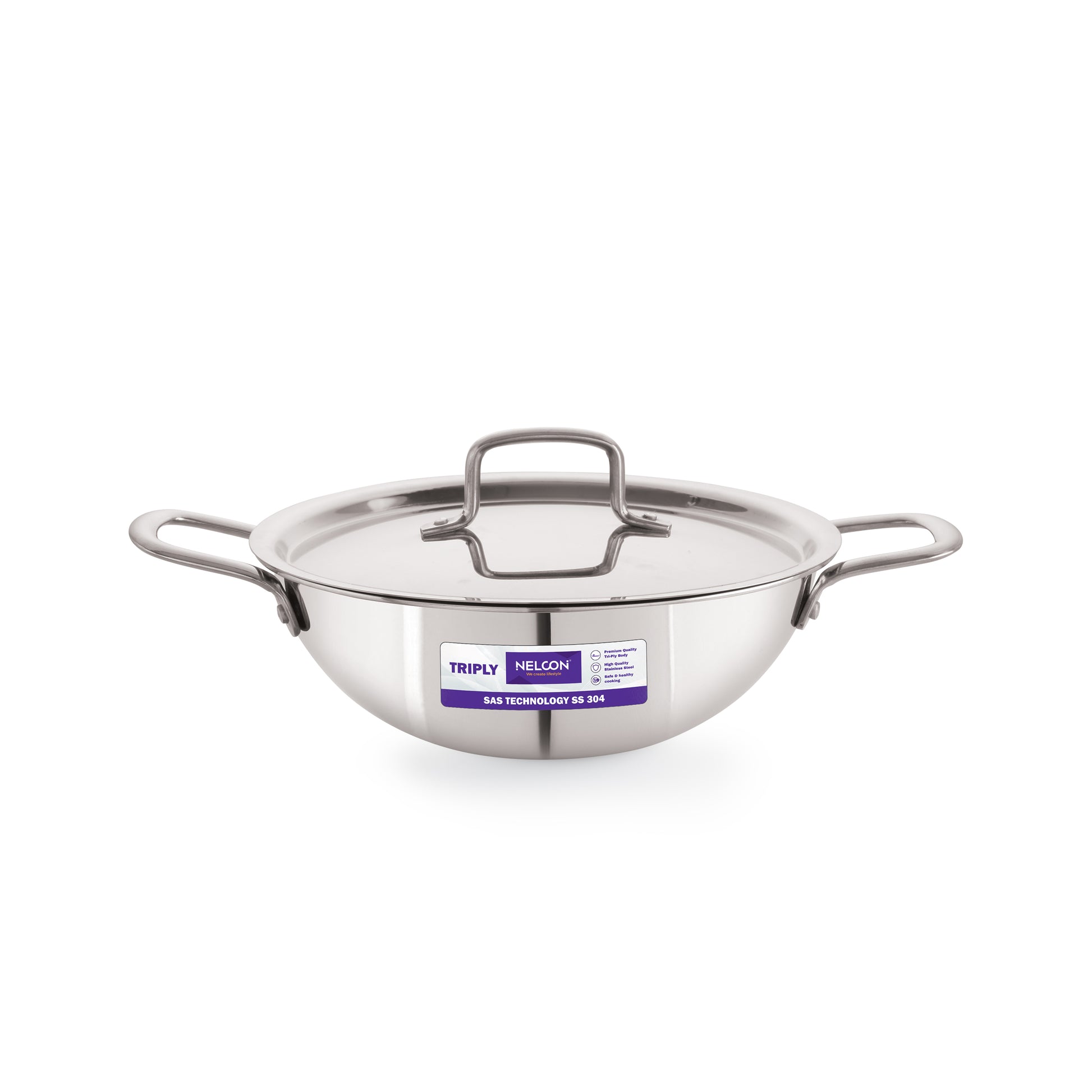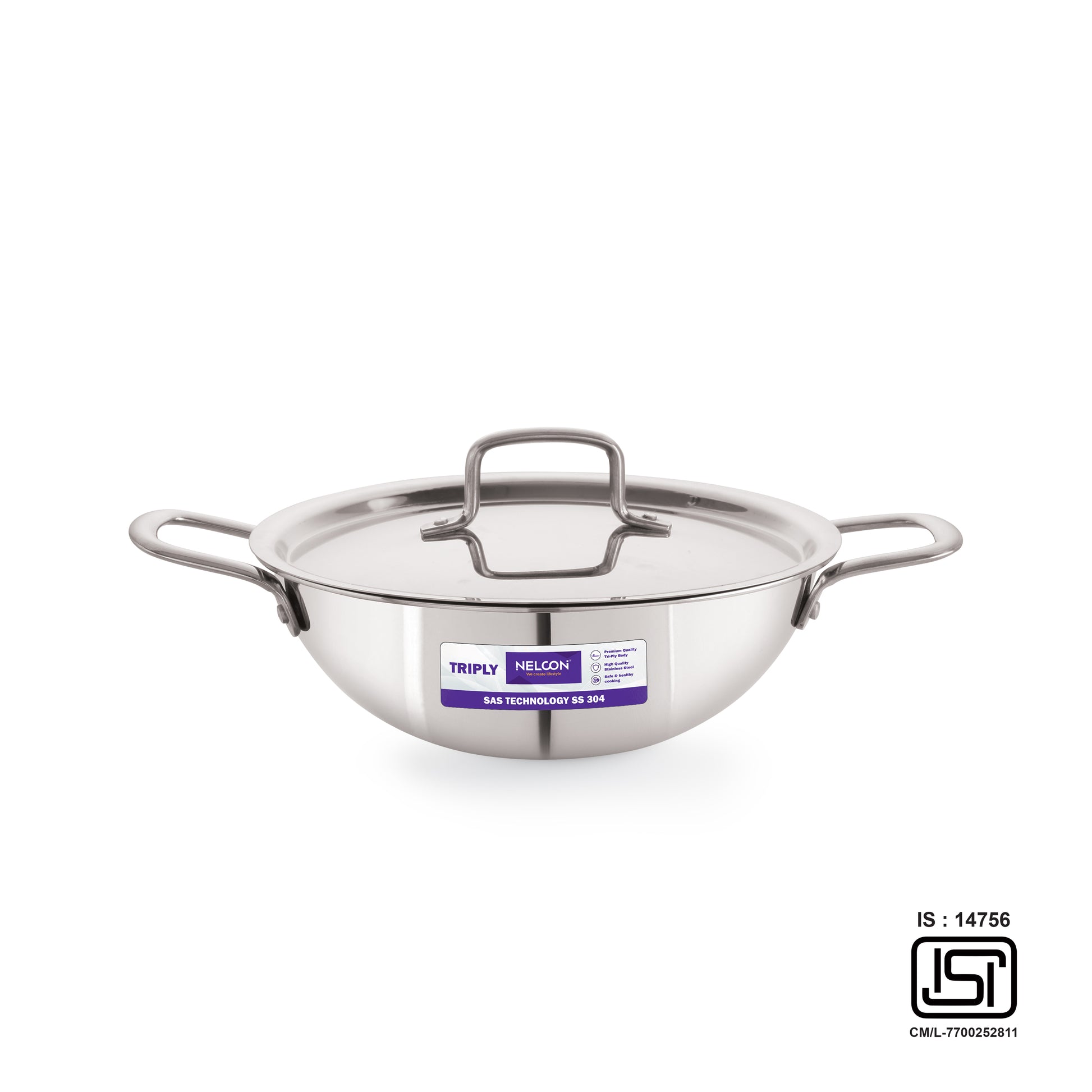 Triply Stainless Steel Kadai SS Lid Induction Base 22cm