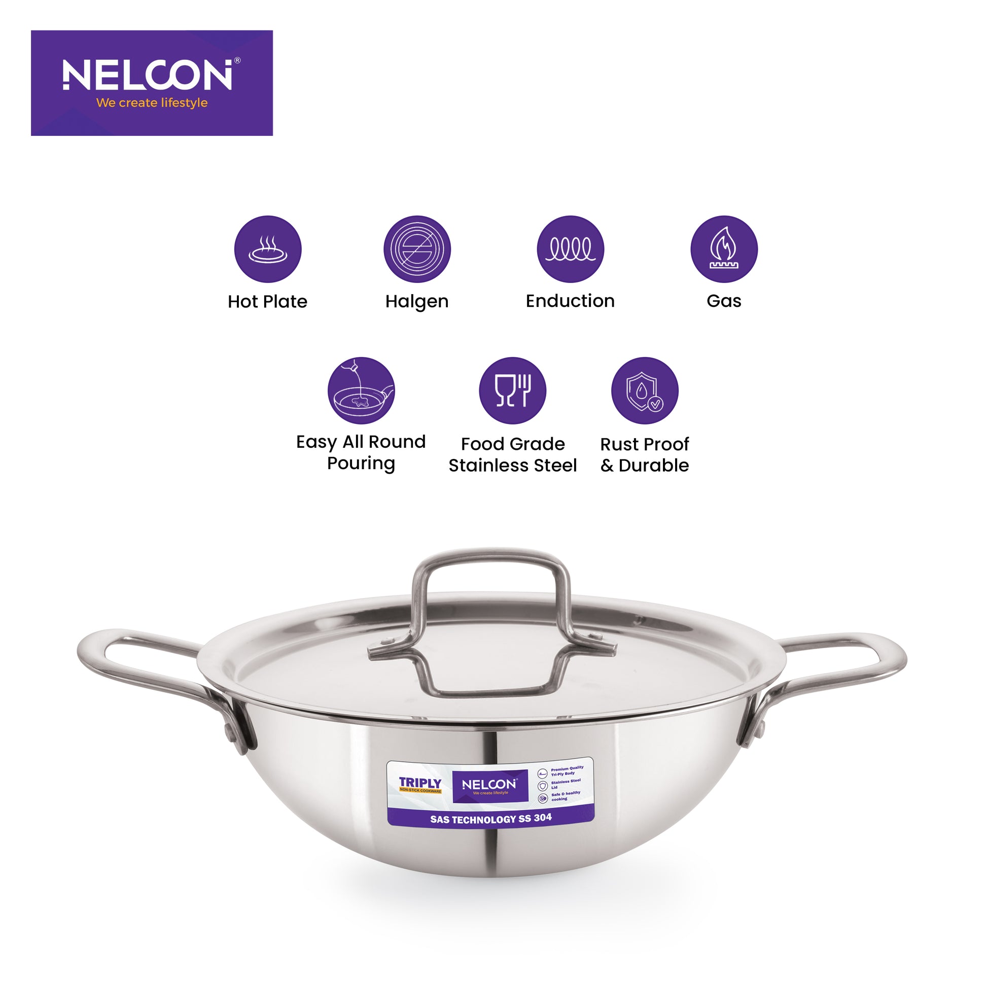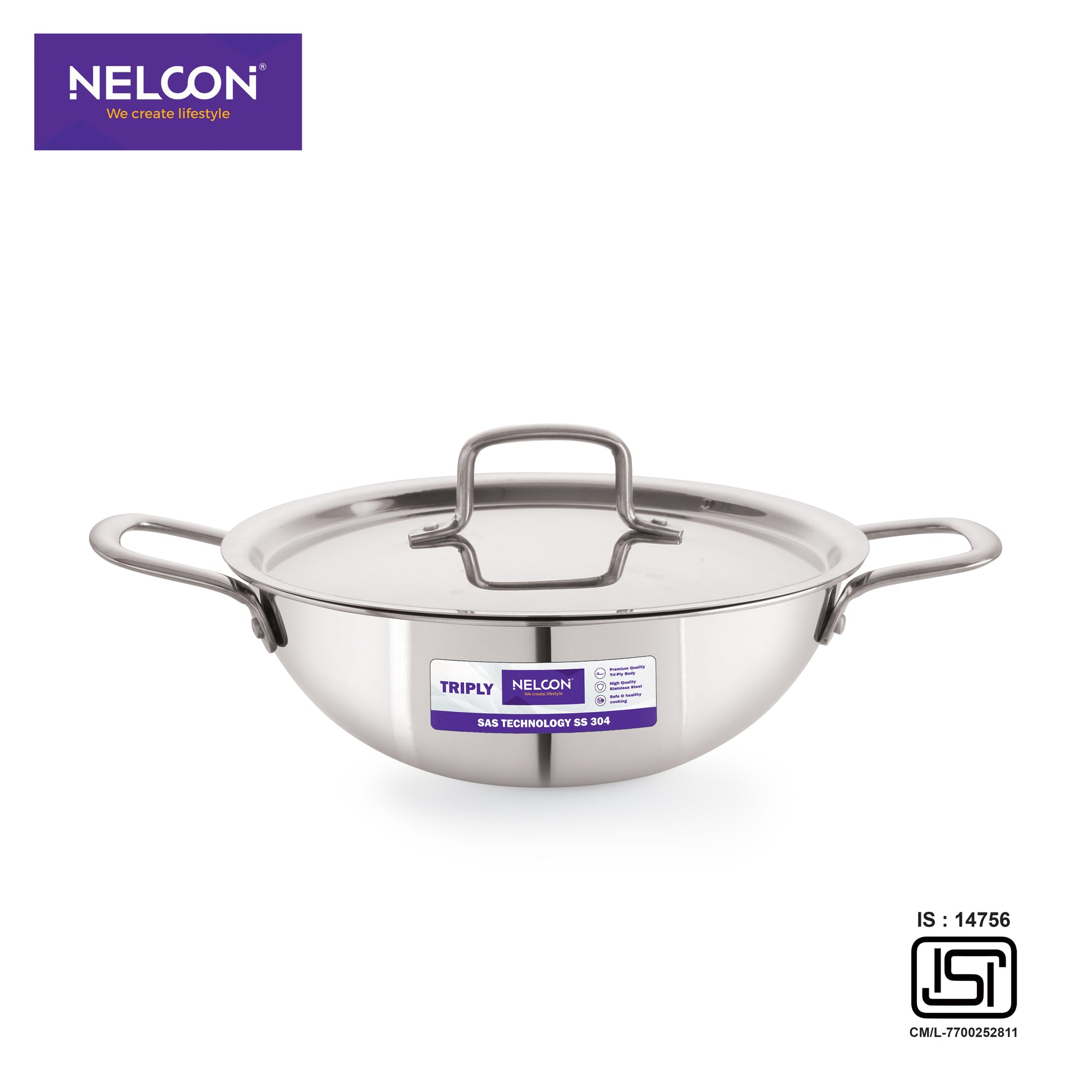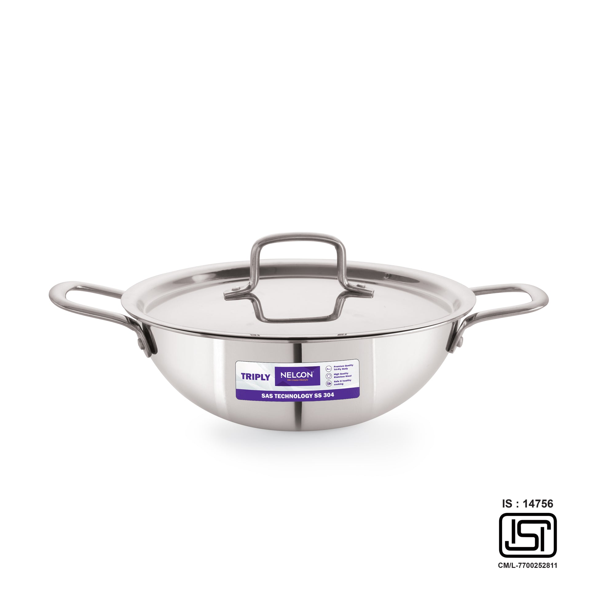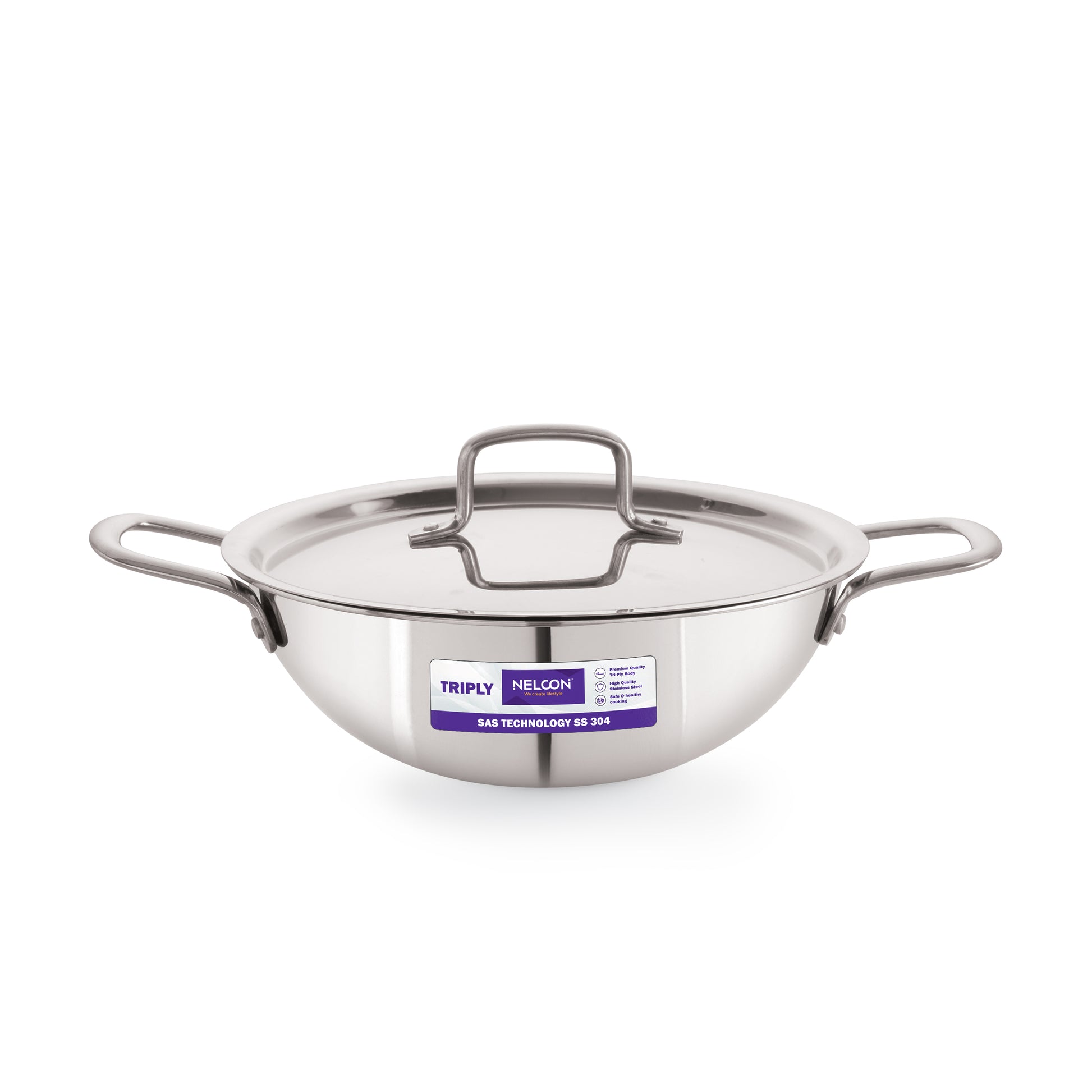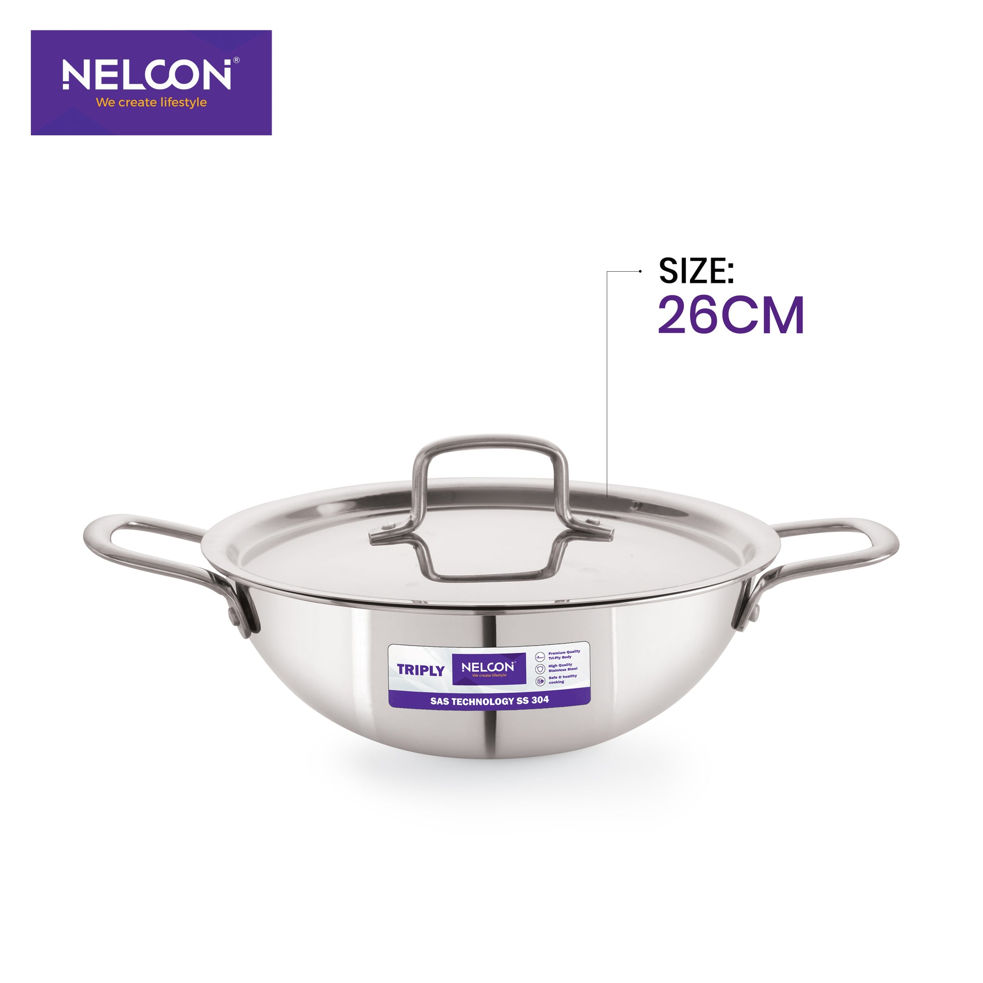 Triply Stainless Steel Kadai SS Lid Induction Base 26cm